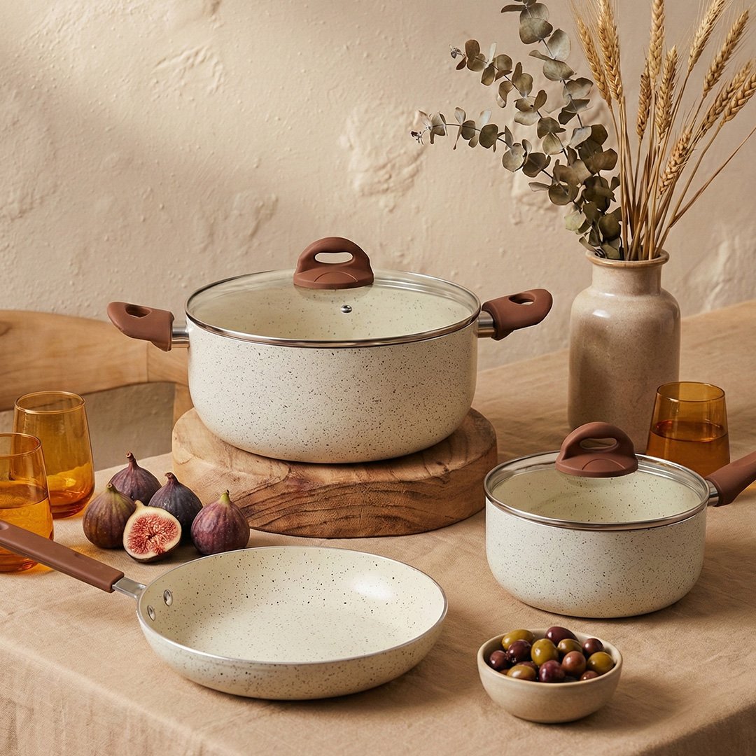 No manuseio, os cabos e alças em silicone Soft Touch ajudam a trazer firmeza e conforto térmico. O resultado é um conjunto que entrega presença e durabilidade, mas principalmente uma cozinha mais fácil de usar — todos os dias.