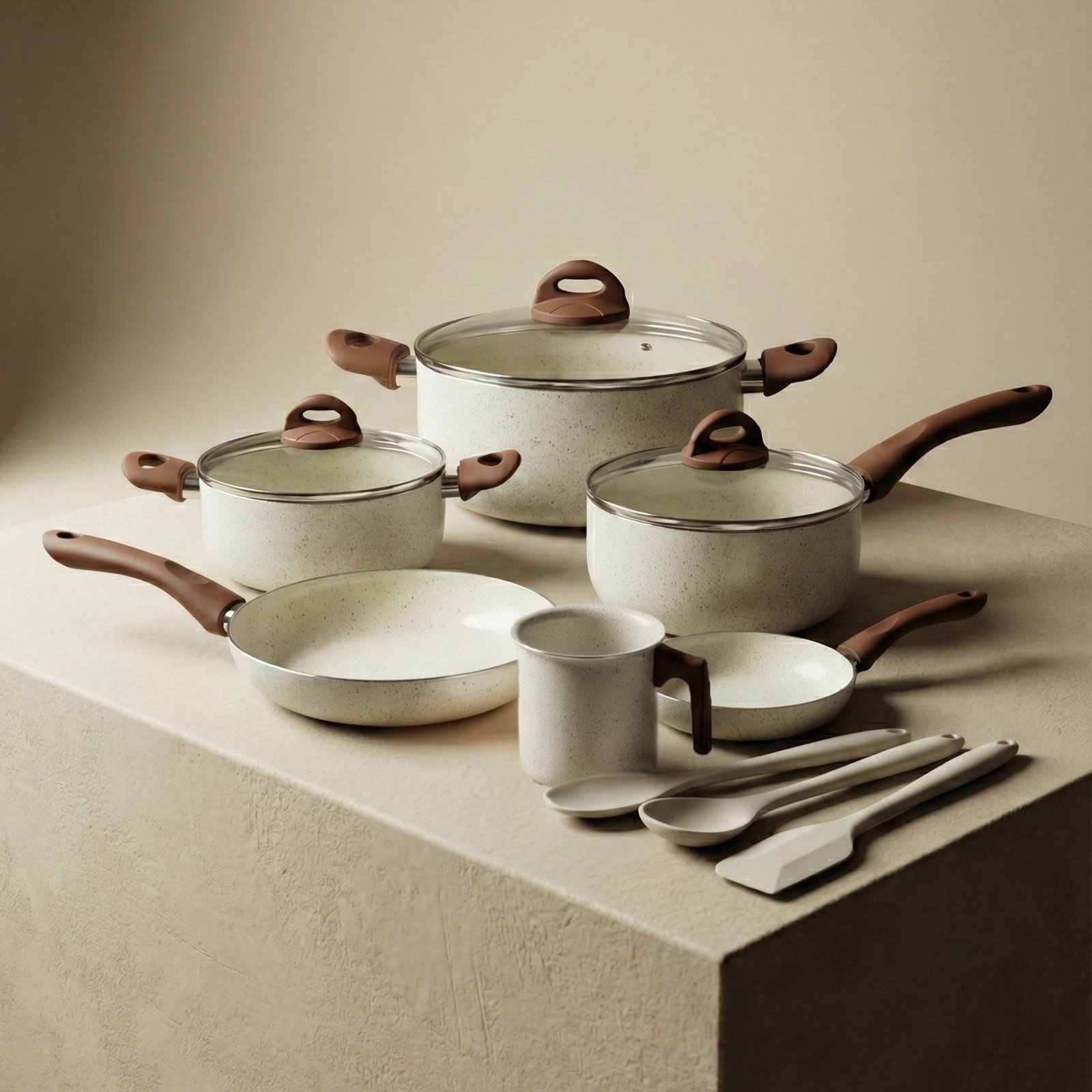 Um conjunto completo, pensado para uma cozinha que precisa funcionar com leveza. São 10 peças que organizam a rotina com praticidade e conforto, incluindo utensílios em silicone que entram no uso de verdade – não só pra completar caixa.