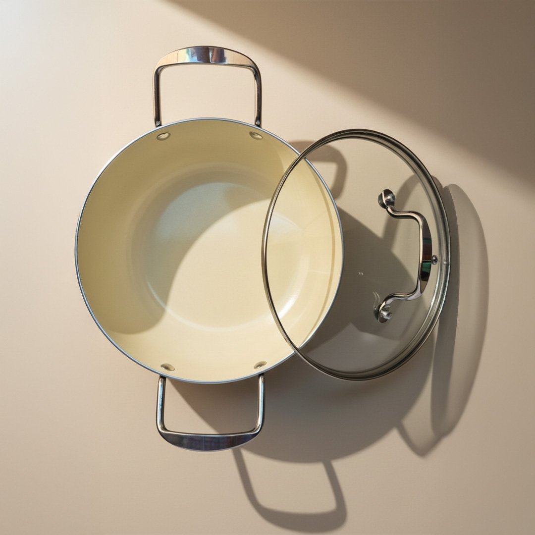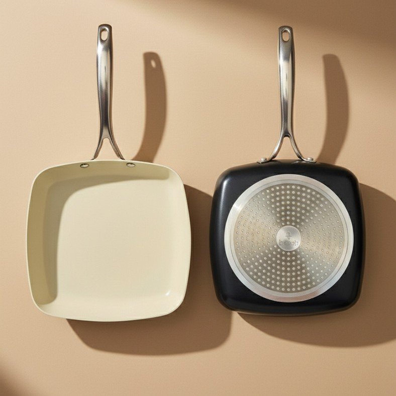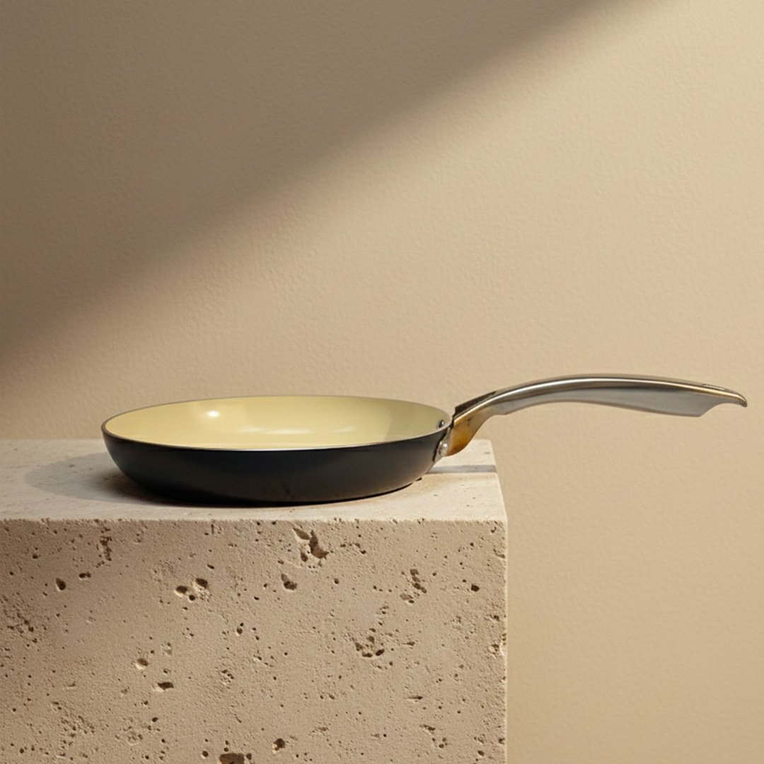 Com corpo em alumínio de alta performance e espessura robusta de 2.5mm, o Steel distribui o calor de forma estável, melhora o resultado do preparo e reduz a necessidade de óleo graças à superfície cerâmica antiaderente.