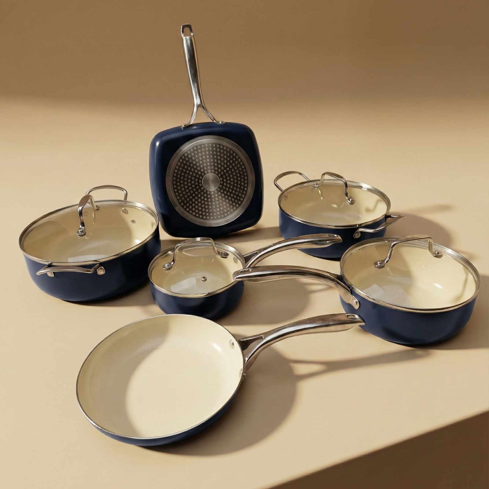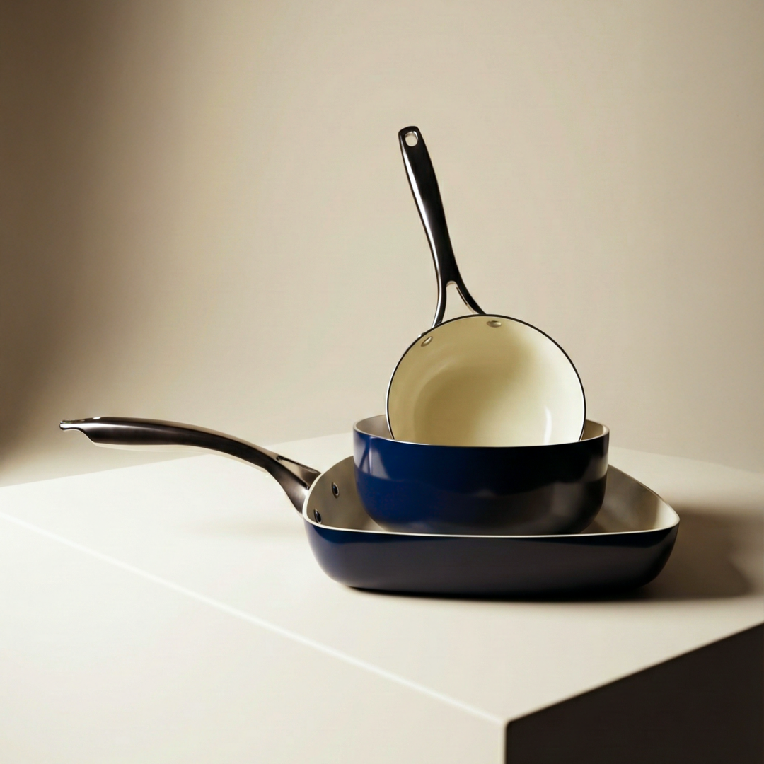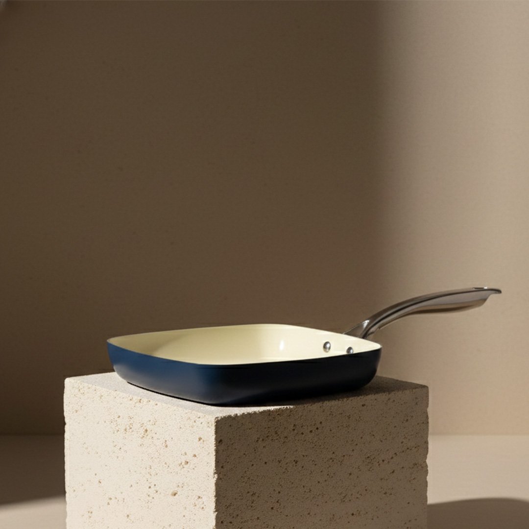 Com corpo em alumínio de alta performance e espessura robusta de 2.5mm, o Steel distribui o calor de forma estável, melhora o resultado do preparo e reduz a necessidade de óleo graças à superfície cerâmica antiaderente.