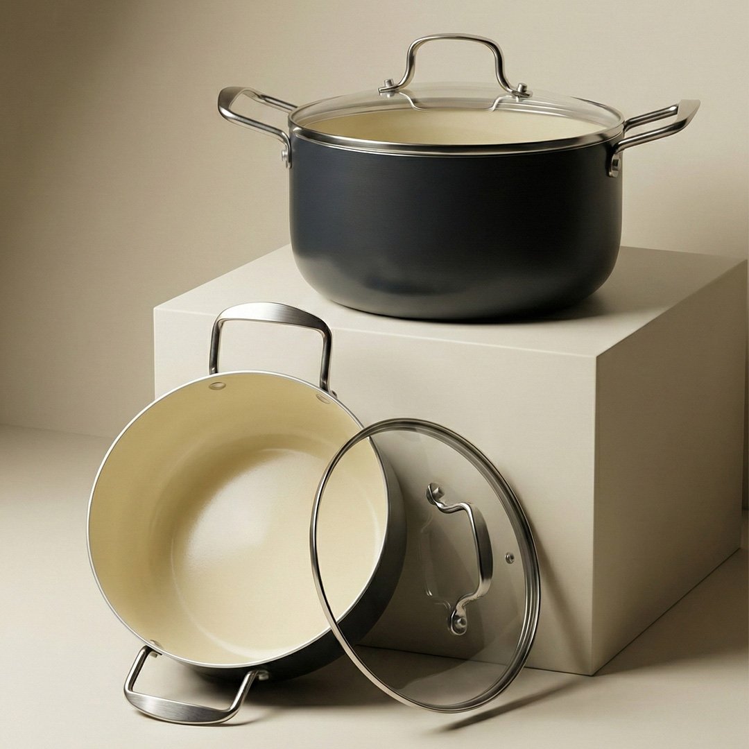 E a principal diferença está na versatilidade real: compatível com gás, indução e forno. Da chama ao forno, sem trocar de panela — mais liberdade no processo, mais autoridade na entrega.